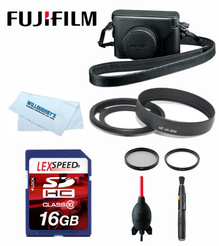 Accesory Kit for Fuji x10/x20 + Fujifilm LC-X10/X20 Leather Case for Camera (Black) + Metal Lens Hood with Adapter Ring